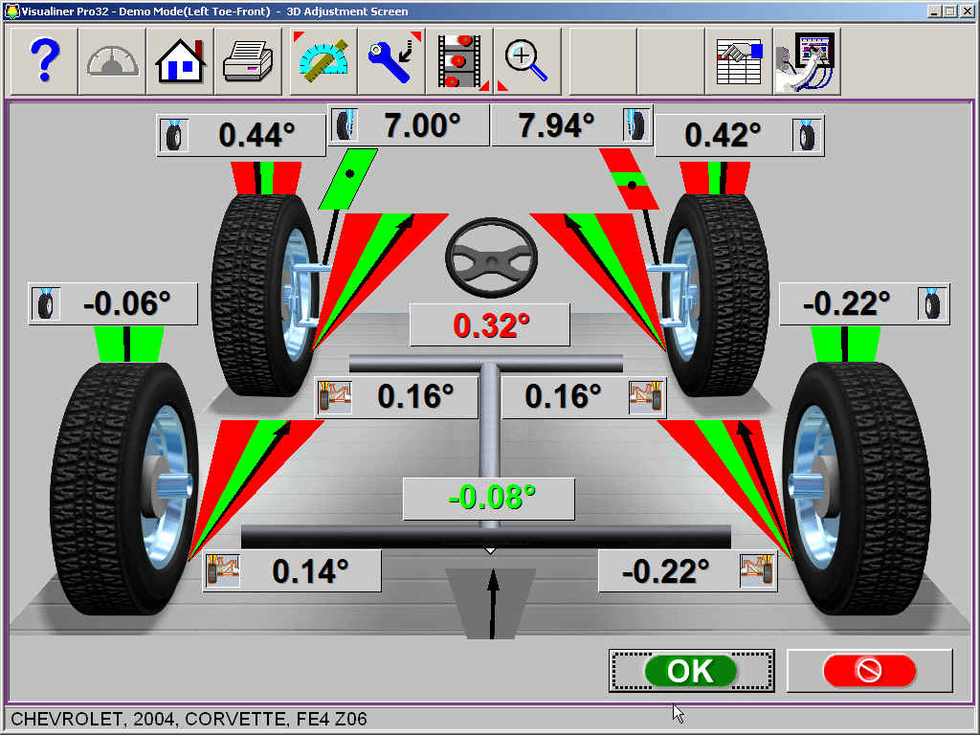 Zjištění stavu seřízení jednotlivých částí přední a zadní nápravy podvozku vozidla se provádí pomocí přesného laserového zařízení. Naměřené hodnoty jsou porovnávány s hodnotami dodanými výrobci vozidel pro jednotlivé modely. V případě zjištěné odchylky geometrii seřídíme, protože pokud jsou vaše kola seřízená správně, zvýší se tím životnost pneumatik i komfort a bezpečnost jízdy.